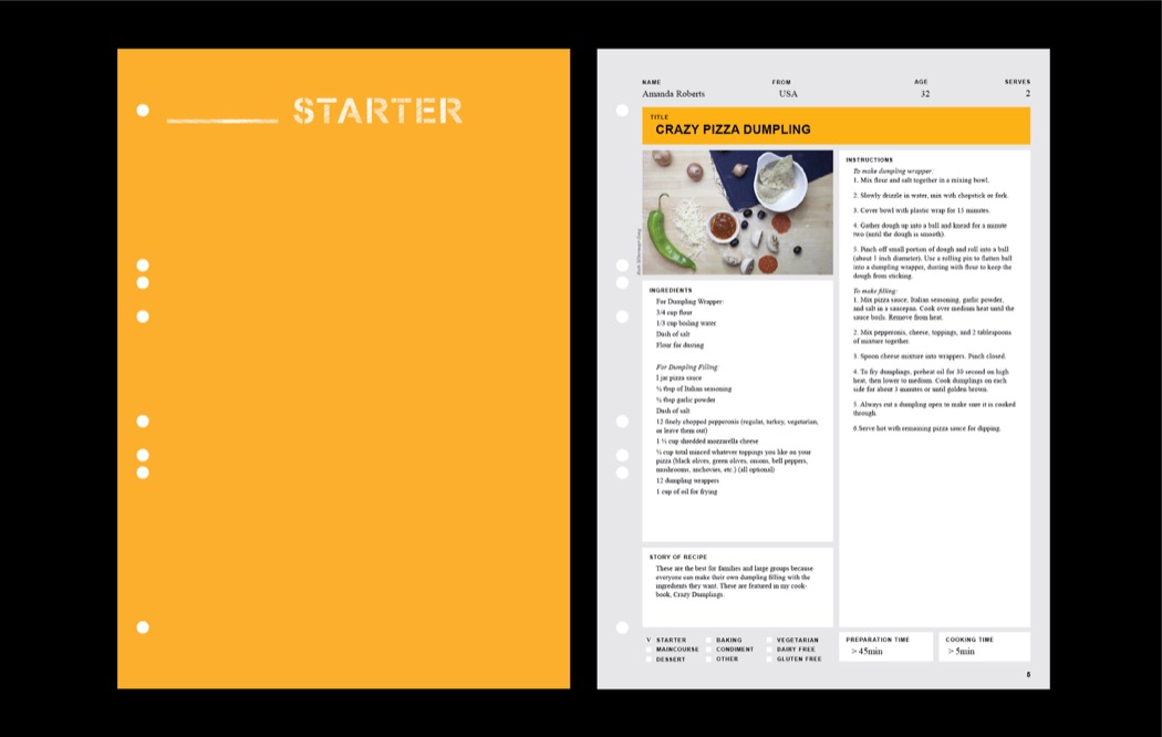 Experimental project to push the boundaries of Kickstarter. Recipes By People is a Kickstarter campaign that asked not for funding, but for the crowd. Each backer could only support the campaign by pledging £1 and submitting their favorite food recipe. In return, the backers would get the complete digital collection of all the recipes. The campaign had an objective of £10 and raised £1 925 from 1318 backers. The final recipe book consisted of 866 different recipes by 758 people from 51 countries.